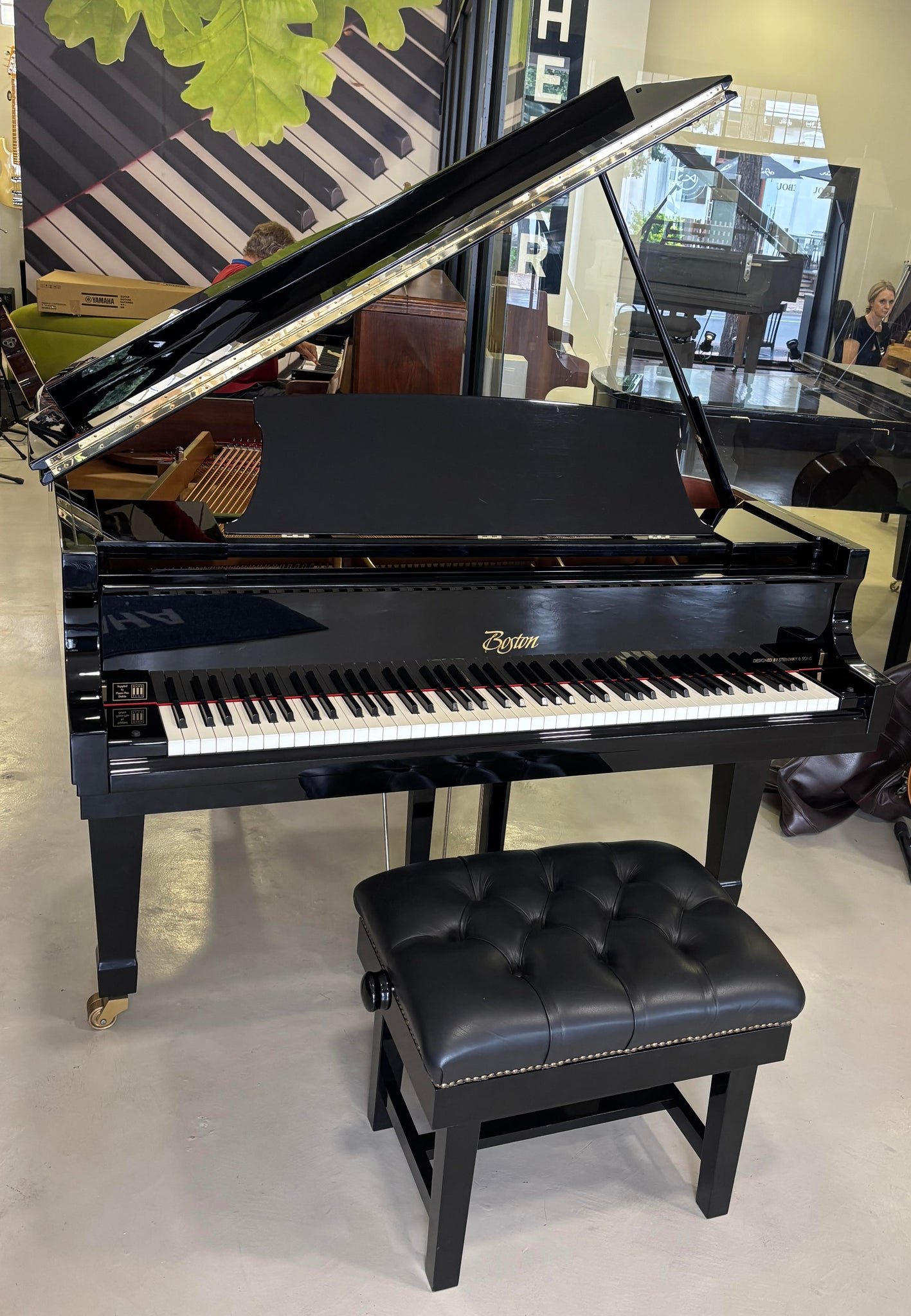 The Boston GP-156 PE is the perfect blend of refined craftsmanship and powerful performance. Designed by Steinway & Sons, this 5'1" grand piano delivers the rich tonal depth and dynamic range of a concert instrument, all within a size ideal for homes, studios, and intimate venues. Its sleek polished ebony finish exudes sophistication, while advanced design innovations, such as a wider tail for a fuller soundboard and longer bass strings that ensure a resonance and clarity that surpasses other pianos in its class.